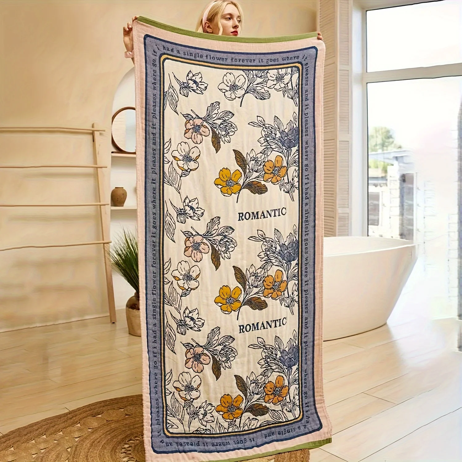 1 Piece Retro Fashion Floral Cotton Bath Towel, Super Soft Absorbent Large Bath Towel, Suitable For Swimming, Gym, Beach, Multi-