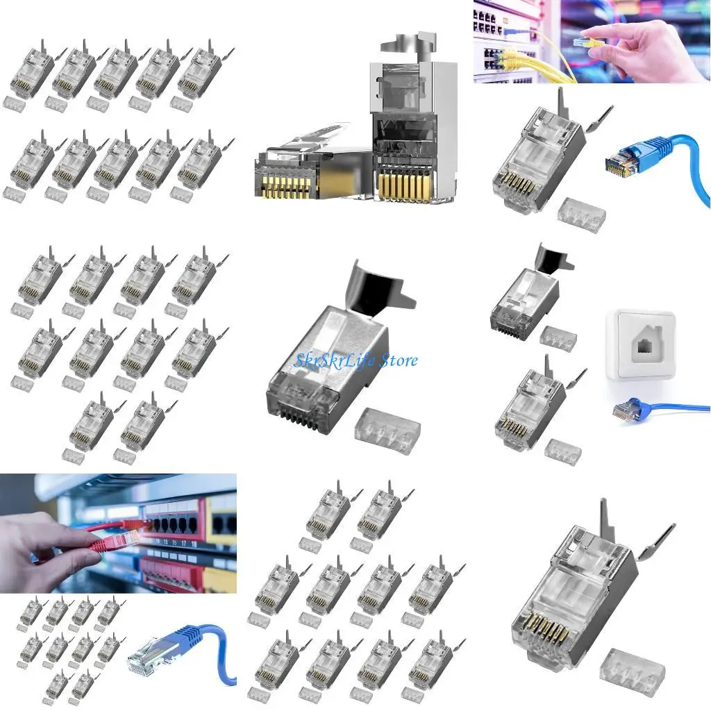 E65E Gold Plateds 3Prong Shieldeds Ethernet Plugs For CAT6A Cable Supports 10Gbps Speed And Customs Cable Lengths