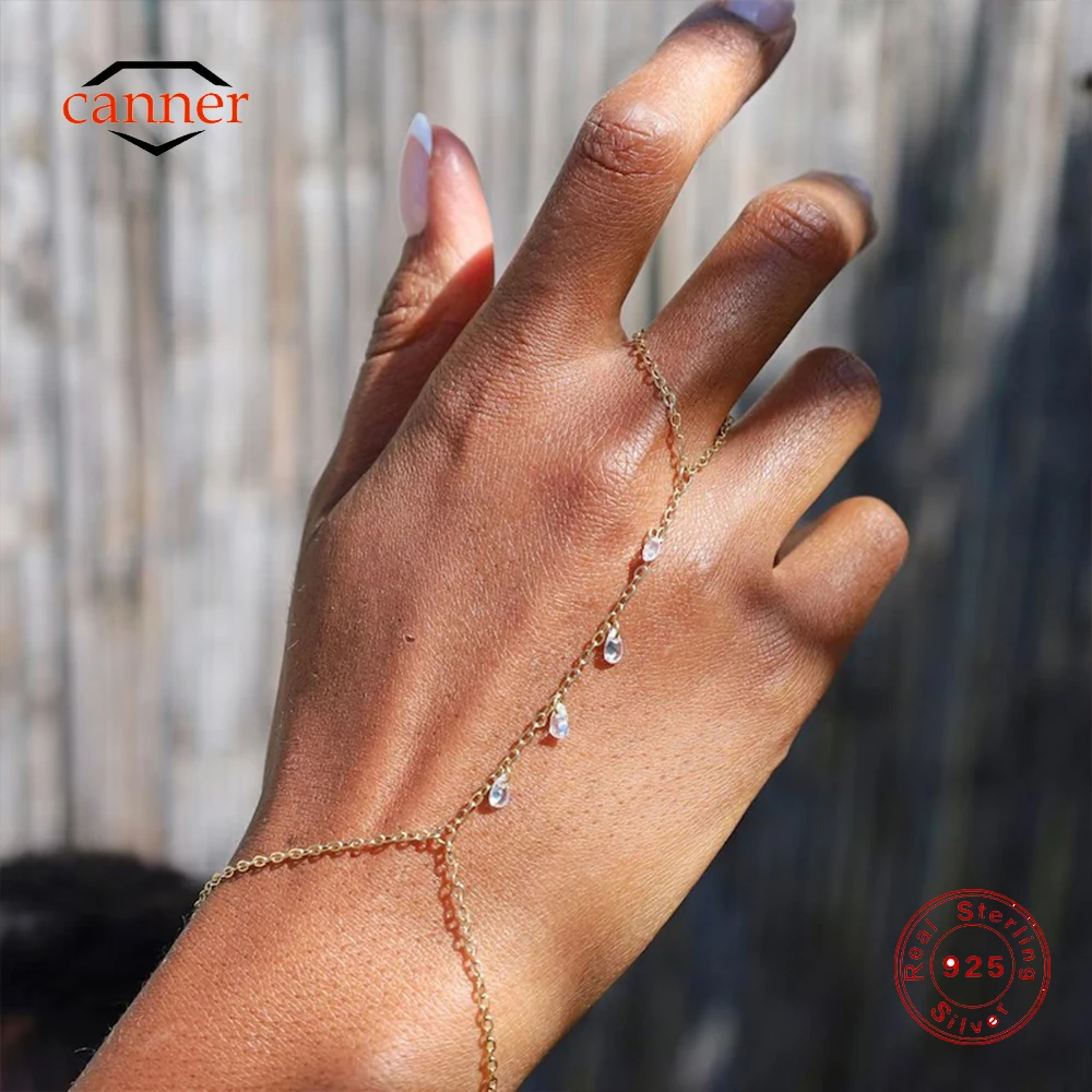 CANNER 925 Sterling Silver Sparking Hand Chain Bracelets For Women INS Geometric CZ Eight-pointed Star Bracelets Fine Jewelry