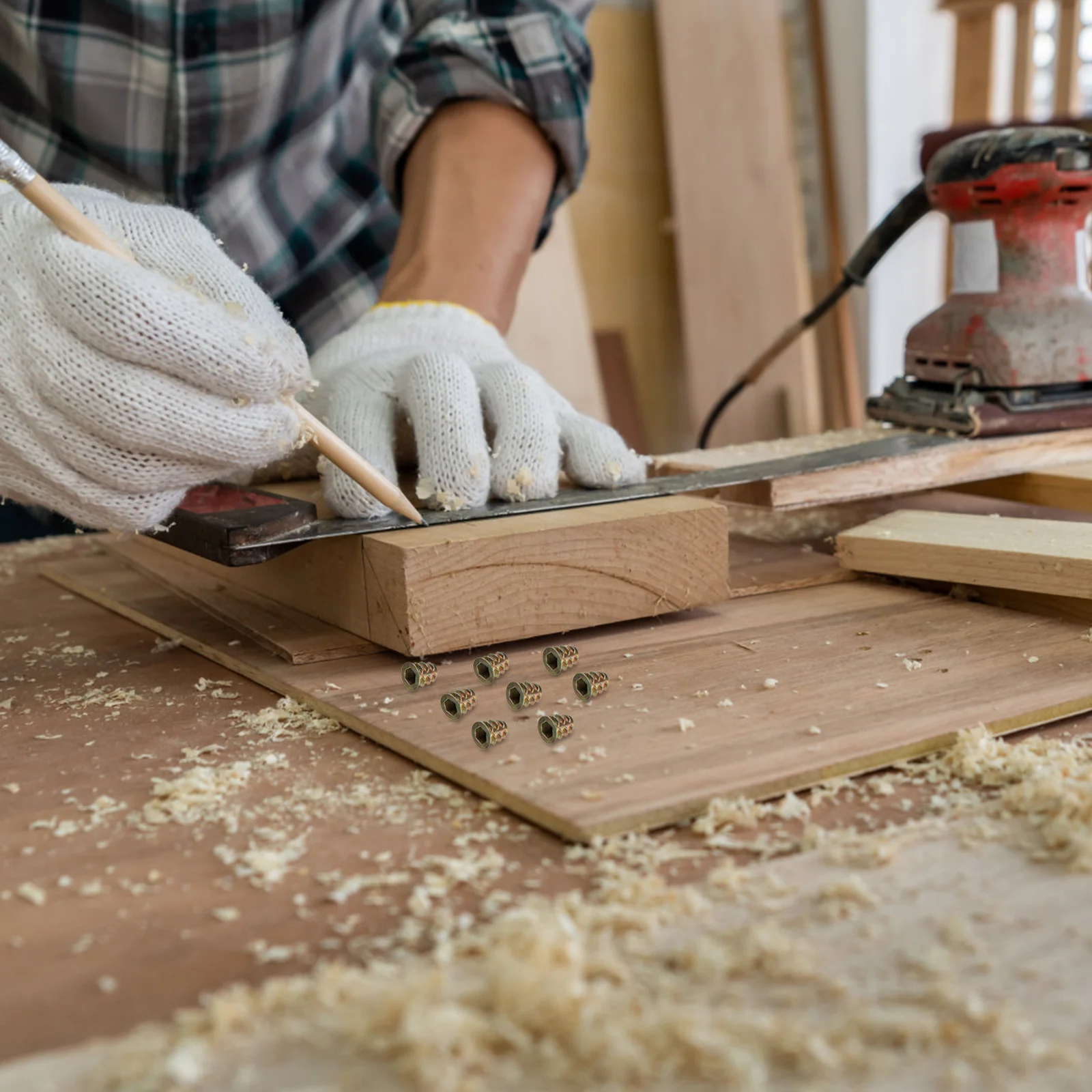 100pcs Wood Furniture Inserts Kit M8X15 Carbon Steel Threaded Inserts For Wood Hex Socket Fasteners Cabinet Assembly Repair