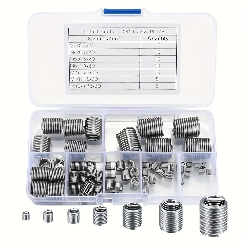 60pcs Silver M3-M12 304 Wire Thread Insert Repair Kit Set Stainless Steel Spiral For Hardware Repair Tools Easy Install