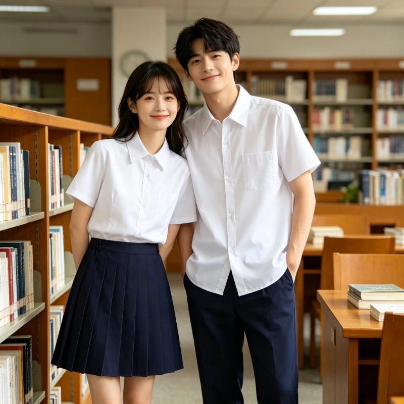 JK Academy Style White Shirt Set for Teen Girls, Summer School Uniform Perfect for Graduation, Sports Day & Chorus Performances