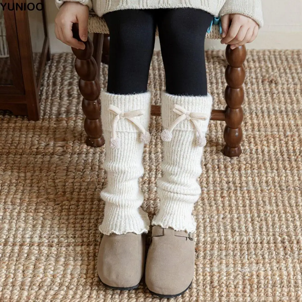 Fashion Harajuku Children's Leg Warmers Bow Japanese Style Knitted Foot Cover Casual Kawaii Kids Long Socks Winter