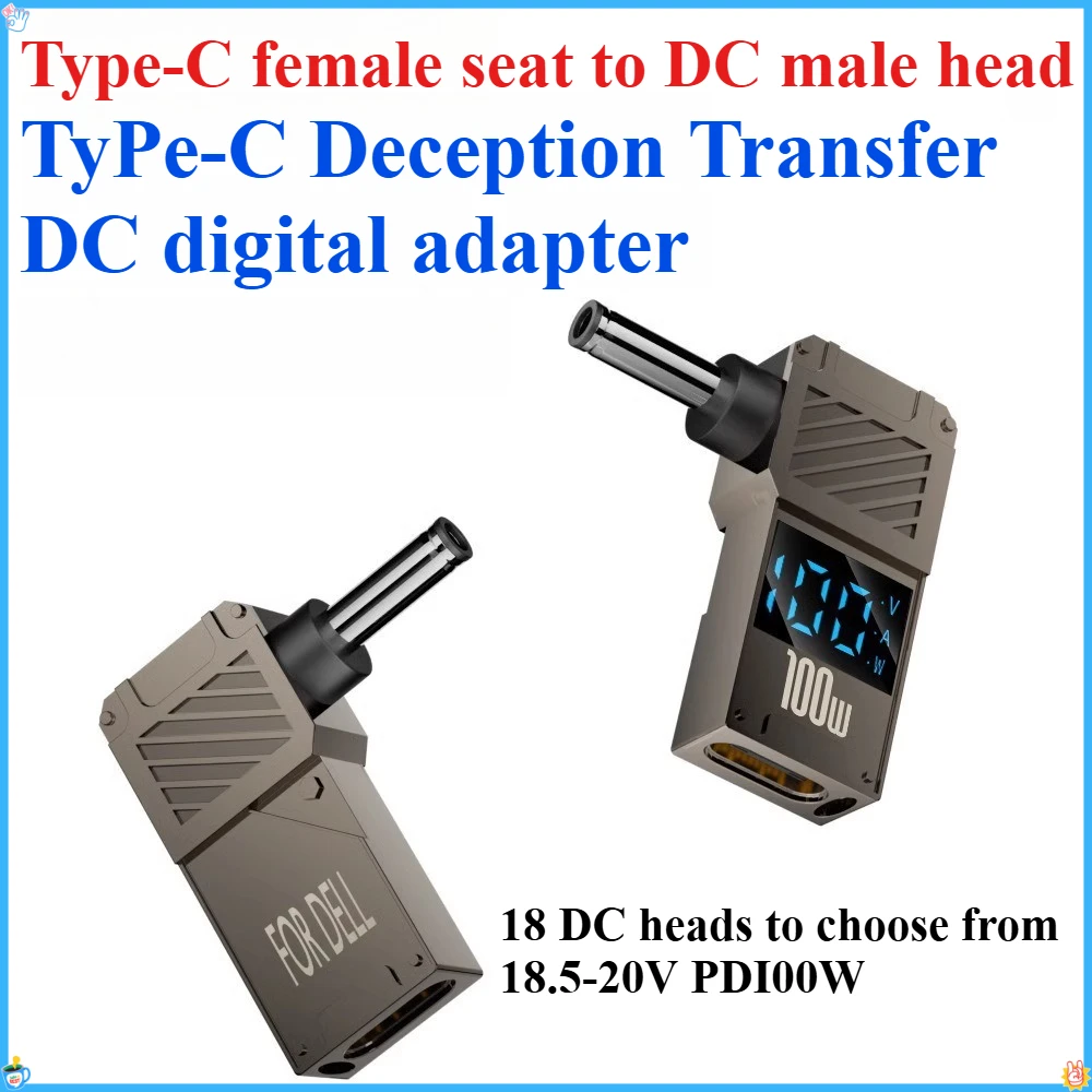 1PCS Type-C To DC Fast Charger Laptop Power Adapter 100W PD Decoy Intelligent Digital Display Adapter Various Specifications