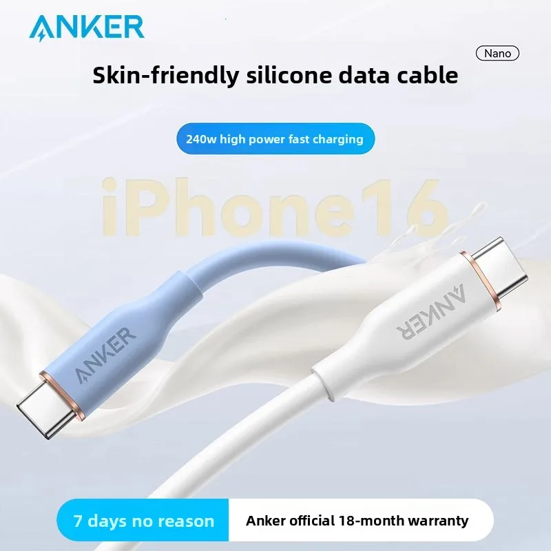 ANKER Dual Head Typec 240W Data Cable PD3.1 Fast Charging Cable Skin Friendly Silicone Soft Suitable for Laptops IPhones Tablets