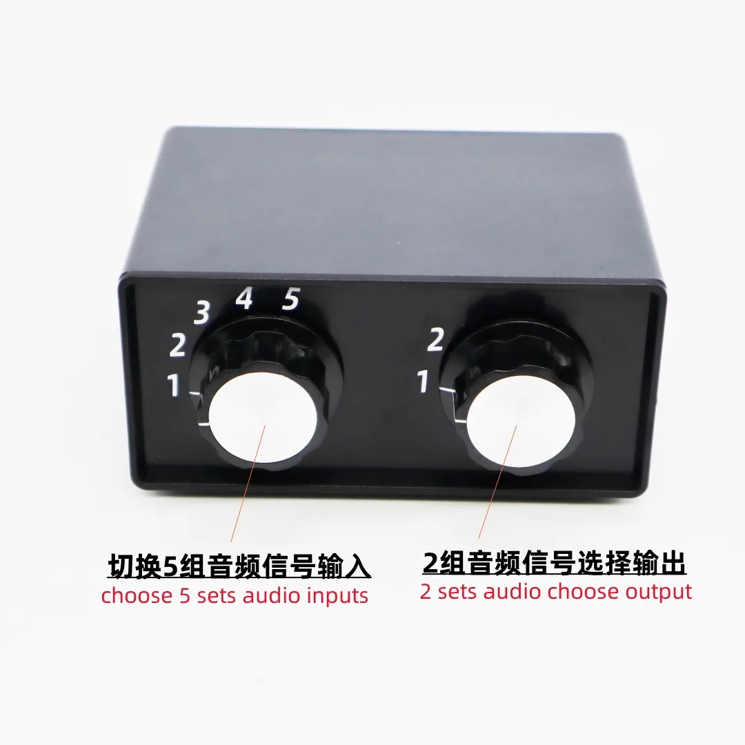 5-cut in 2-out passive front audio switch, 2-channel RCA input/output sound source signal selector