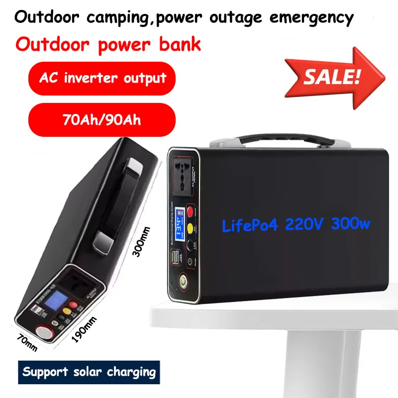 Portable Power Plant 300W 220V, 333Wh, 90000mAh, Solar Generator, LiFePO4 Battery, Outdoor Camping Emergency Power Supply