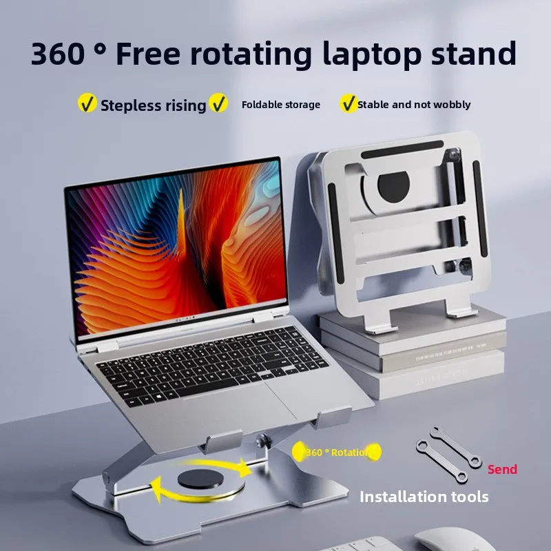 Portable Carbon Steel Laptop Stand with Tablet Holder Foldable 360 Rotation Adjustable Height Non Slip Design Tablet Stand