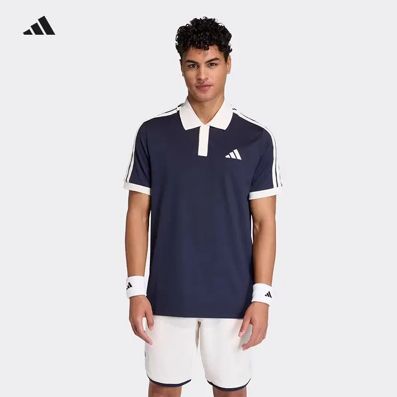 Adidas KA5899 Mens Classic 3 Stripes Polo Shirt Navy Blue White Collar Short Sleeve Casual Top