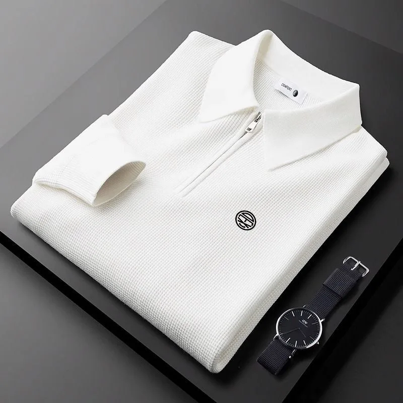Men's new collar shirt, simple and business-like golf sport polo shirt, high-end brand spring-autumn long-sleeved top