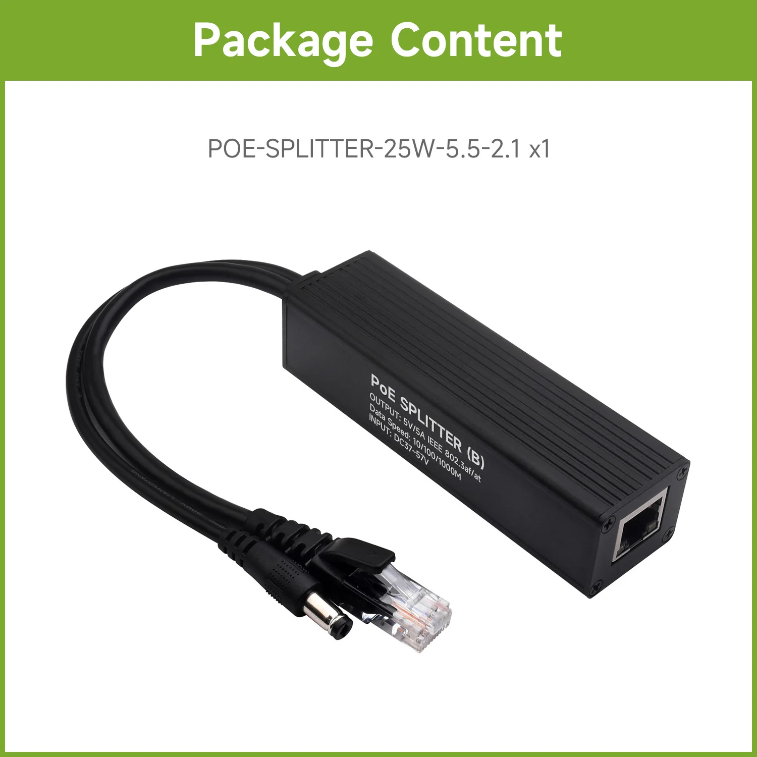 Waveshare Industrial Gigabit PoE Splitter, options for 5V 5A Type-C / DC Power Output Port, Onboard MPS Control Chip,