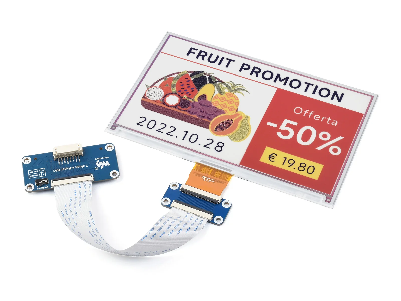 Waveshare 800×480 7.3inch ACeP 7-Color E-Paper E-Ink for Raspberry Pi/Jetson Nano/Arduino/STM32, Display Module, SPI
