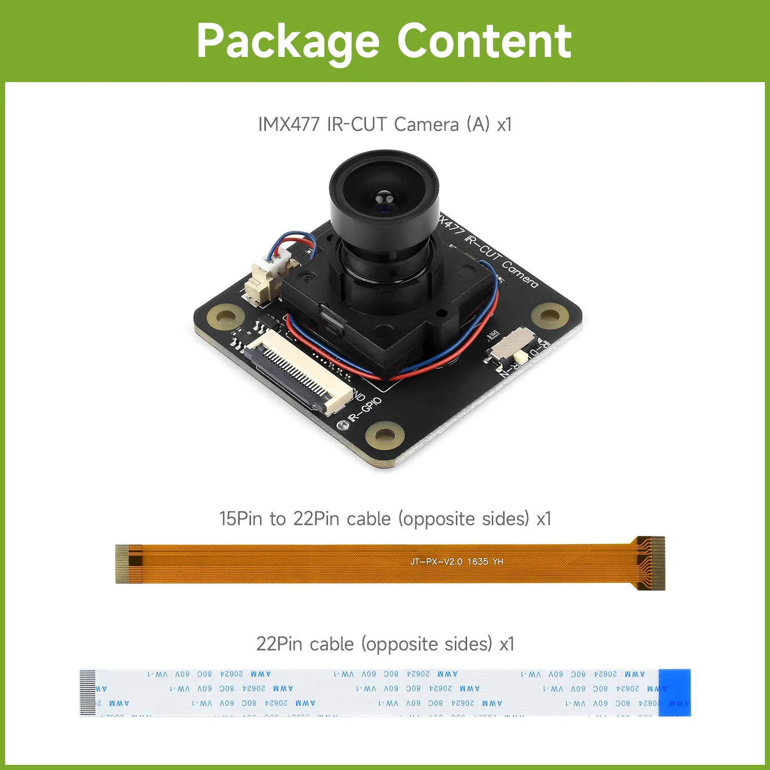Waveshare IMX477 IR-CUT 12.3MP Camera (A), Applicable for Raspberry Pi / Jetson Nano, IMX477 Sensor