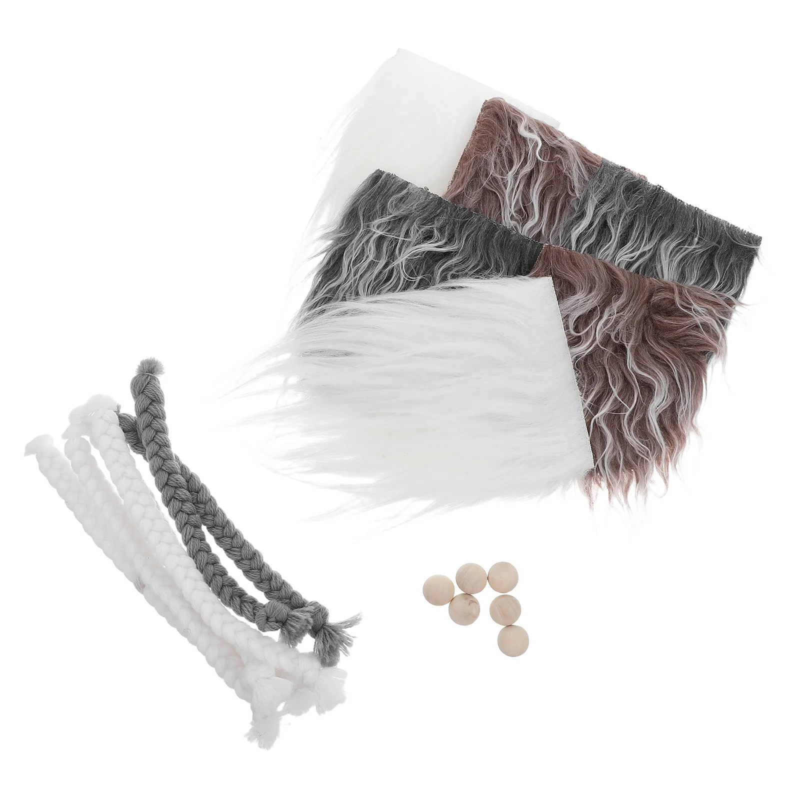 1 set Gnome Crafting Supplies Dwarf Beard Wood Bead Nose Set Pre-Cut Faux Beards For Diy Christmas Gnome Making Craft Decor
