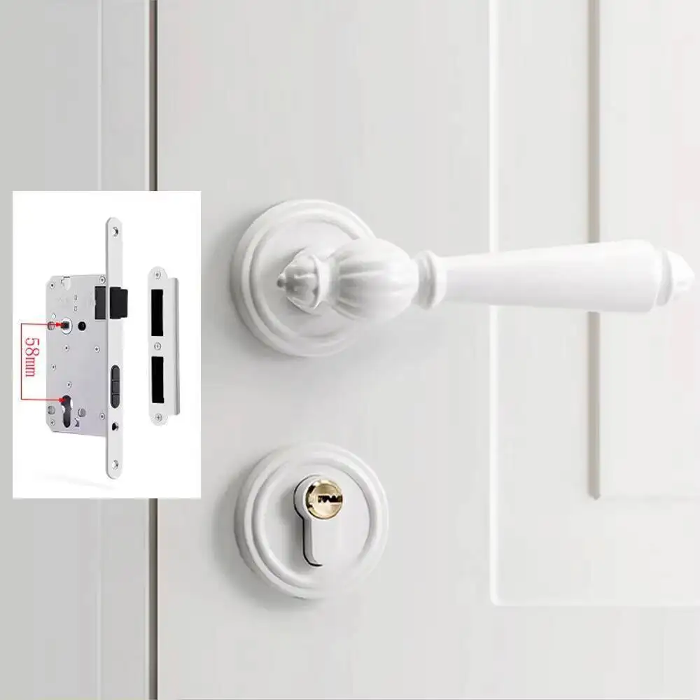 French Bedroom Silent Wooden Family Room Door Lock, Personalized Milky White Lock
