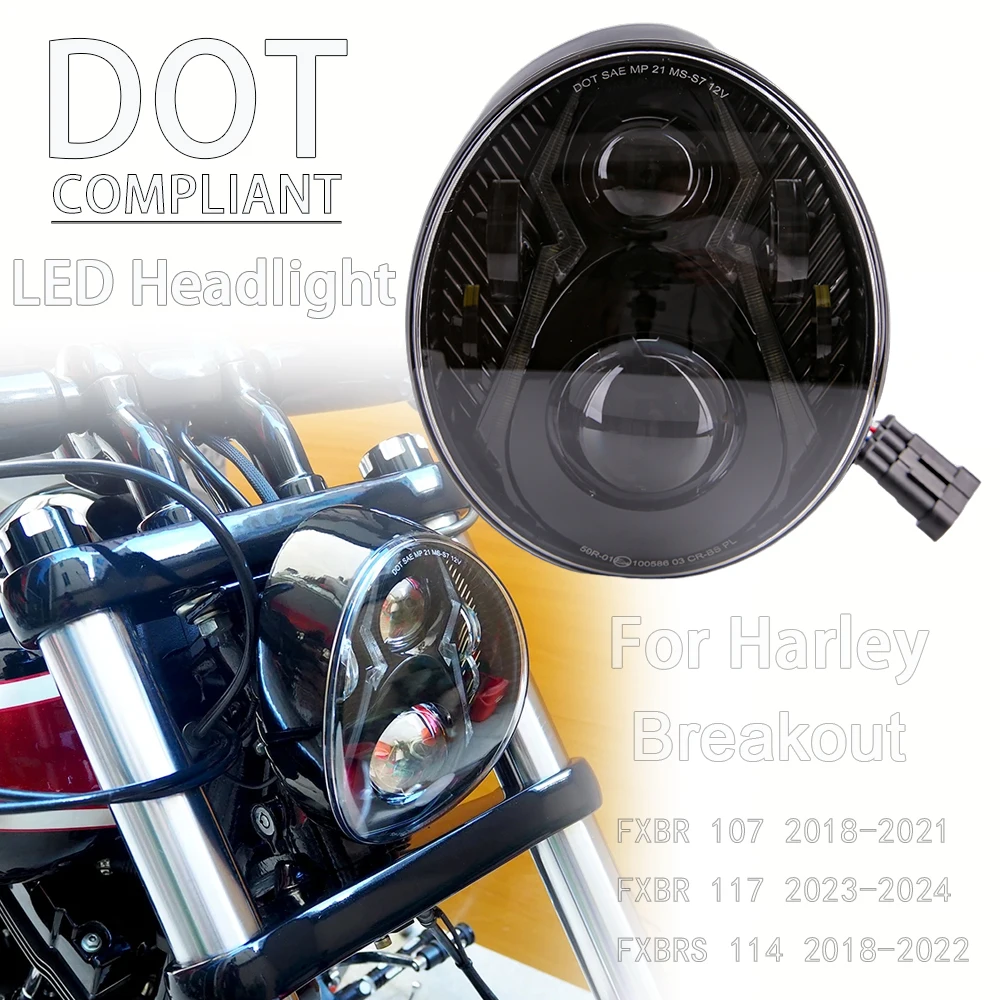 DOT LED Headlight Headlamp For Harley Breakout FXBR FXBRS 2018 2019 2020 2021 2022 2023 2024 Motorcycle Light Lamp DRL