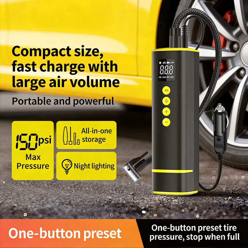 150 PSI Motorcycle Car Air Pump Mini Wireless Tire Inflator Pump Portable Electric Power Bank for Tires Bicycles Ball Football