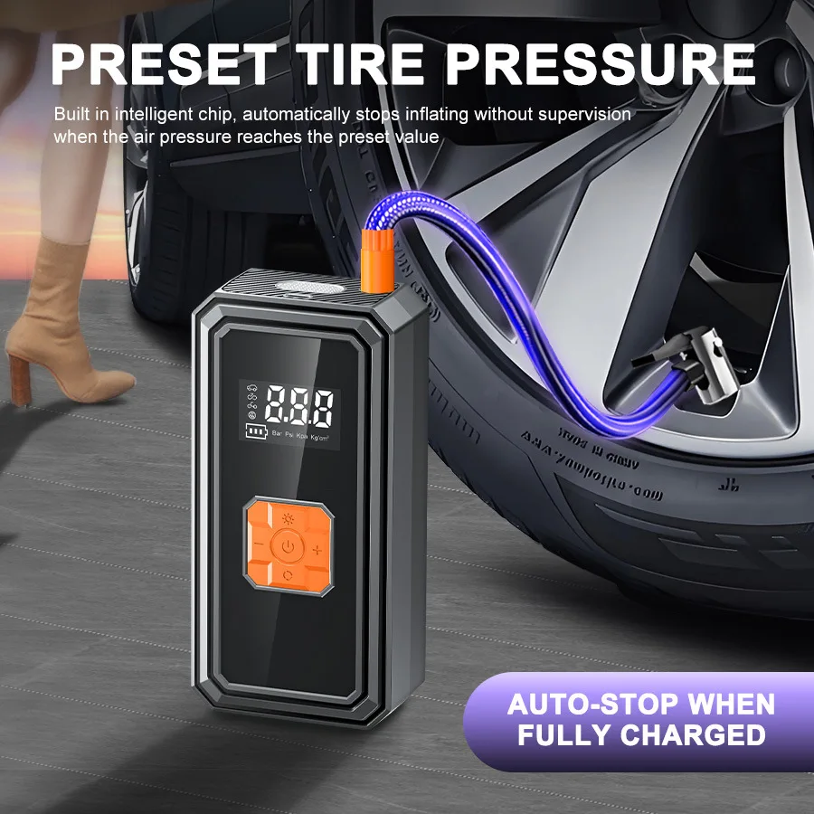 Multifunctional Motorcycle Air Pump Wireless Car Air Compressor Electric Tire Inflator Pump for Bicycle Tyre Digital Display