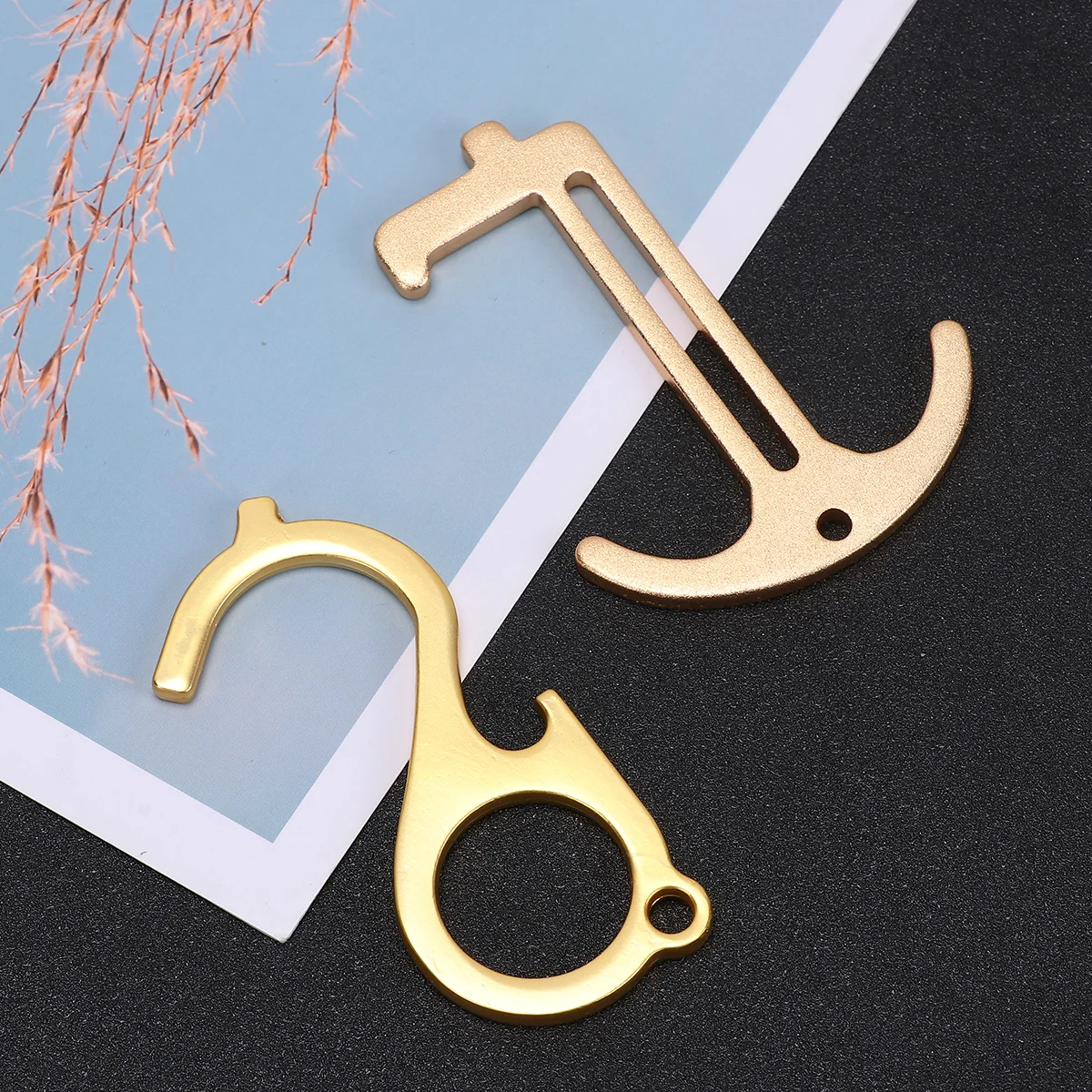 2pcs Door Opener Keychain Contact- Elevator Button Tool For Door Handle Meeting Room Use Portable Small Size Stainless