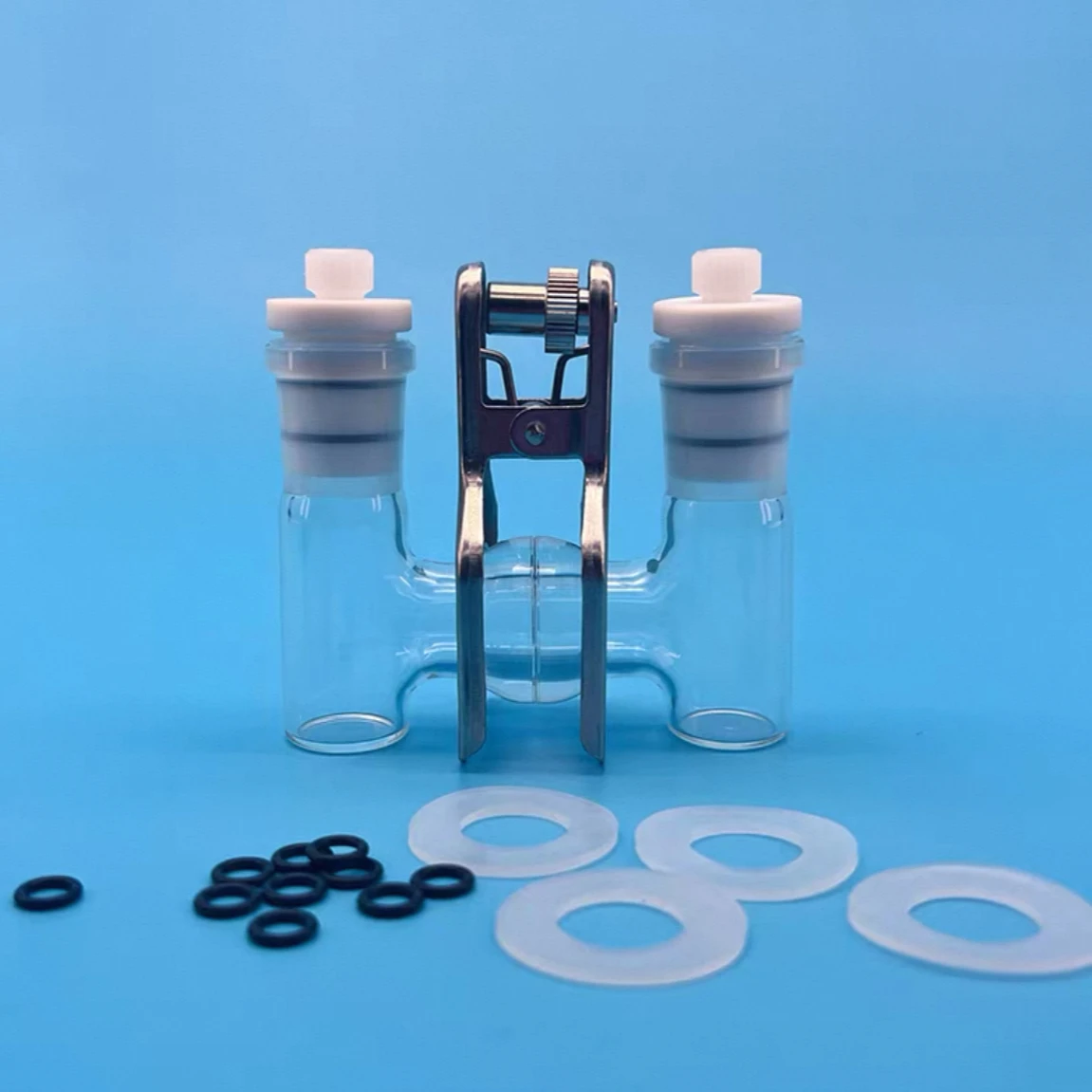 H-type sealed electrolytic cell with frosted mouth and cup electrode body can be equipped with ion membrane