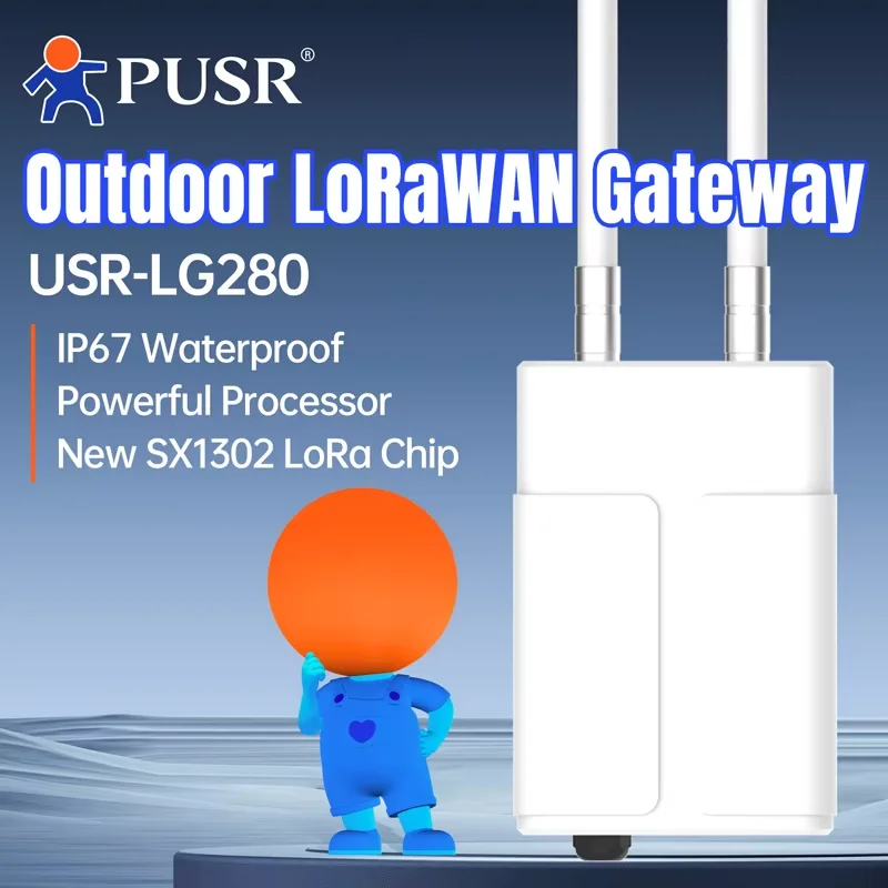 PUSR Outdoor LoRaWAN Gateway Quad-Core 64-bit Processor Semtech SX1302 Up to 2000 end nodes IP67 Waterproof USR-LG280