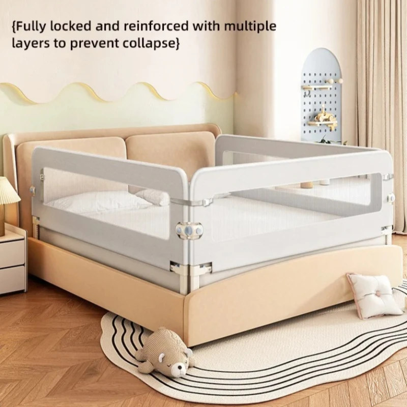 3-Panel Suit Baby Anti-Fall Bed Fence Set - Liftable Safety Guardrail for Children's Raised Bed, Side Protective Rail Breathable