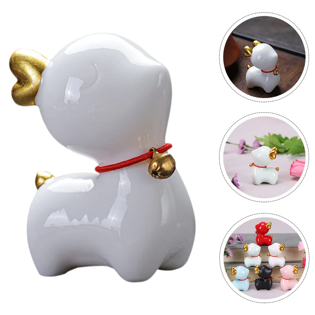Ceramic Deer Statue Desktop Decoration Small Ceramic Tea Pet Animal Sculpture Unique Tabletop Decor for Home Office Living Room