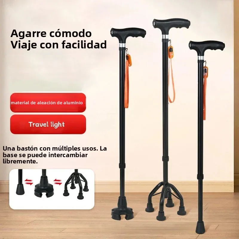 Folding Aluminum Alloy Walking Stick With LED Light Adjustable Lightweight Collapsible Anti-Slip Walking Cane Old Men Crutch