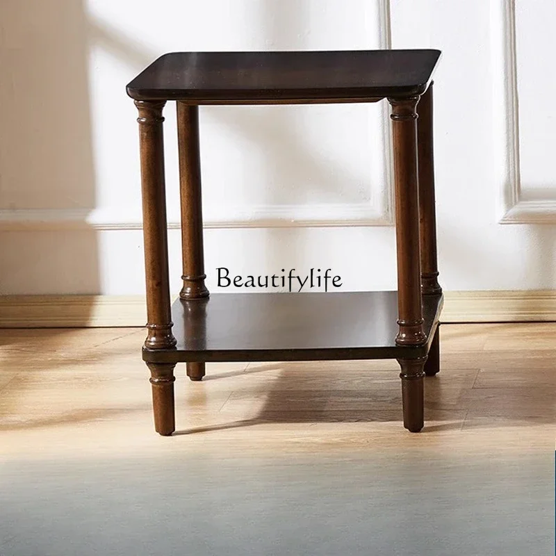 03.American living room sofa side cabinet small square table solid wood tea side table