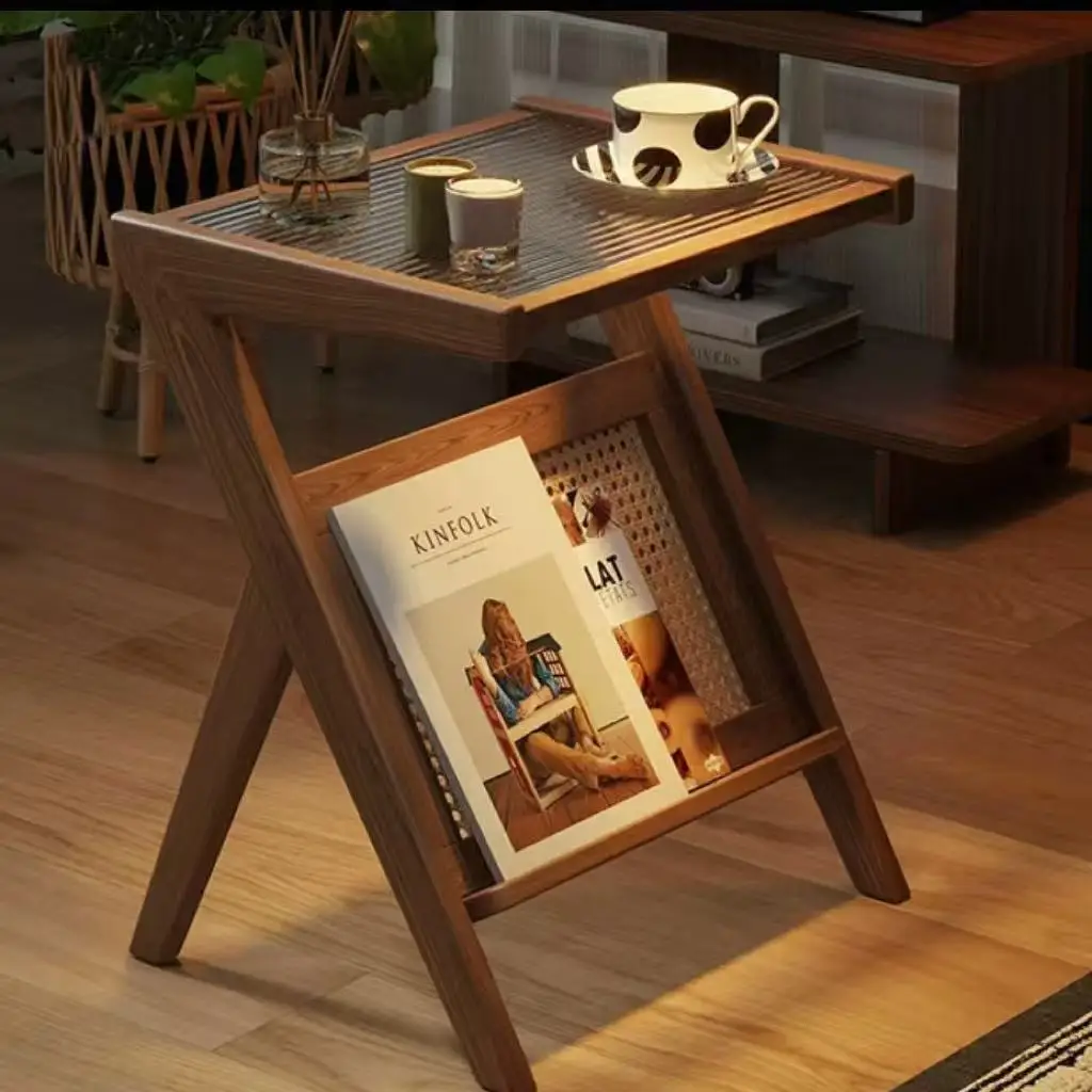 Light luxury modern solid wood smalledge few home living room sofa corner few retro simple style designer original magazine rack