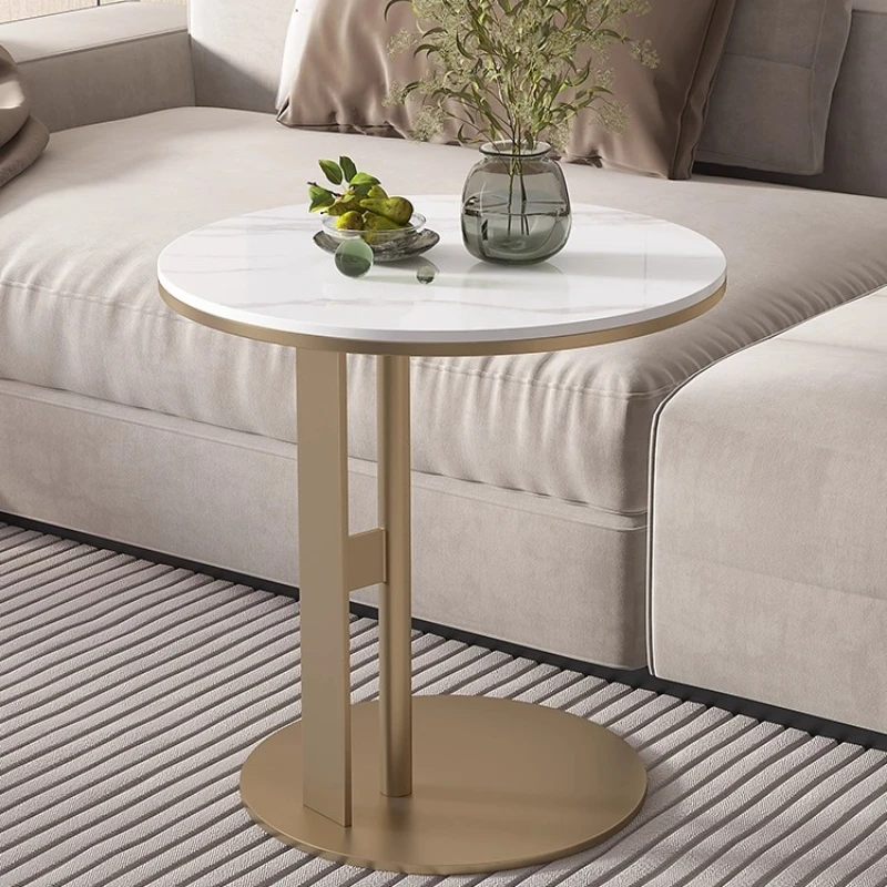 Light Luxury Slate Height Adjustable Side Sofa Table Living Room Small Tea Corner Balcony Modern Simple Round Movable Furniture