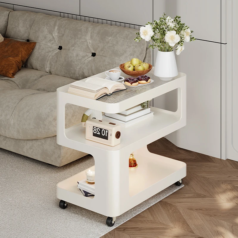 Light Luxury Height Adjustable Side Table Sofa Corner Storage Rack Trolley Living Room Coffee Table Small Mobile Home Furniture