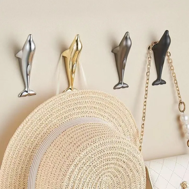 Creative Animal Hook, Small Dolphin, Aluminum Alloy Adhesive Hook, Wall Mounted Bathroom, No Punching Clothes Hook