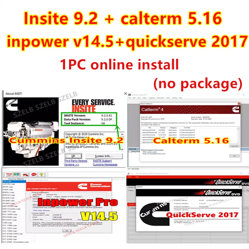 Cummins Insite 9.2 Pro Diagnostic software Calterm 5.16 ECM Calibration Inpower Pro V14.5 QuickServe 2017 online Install