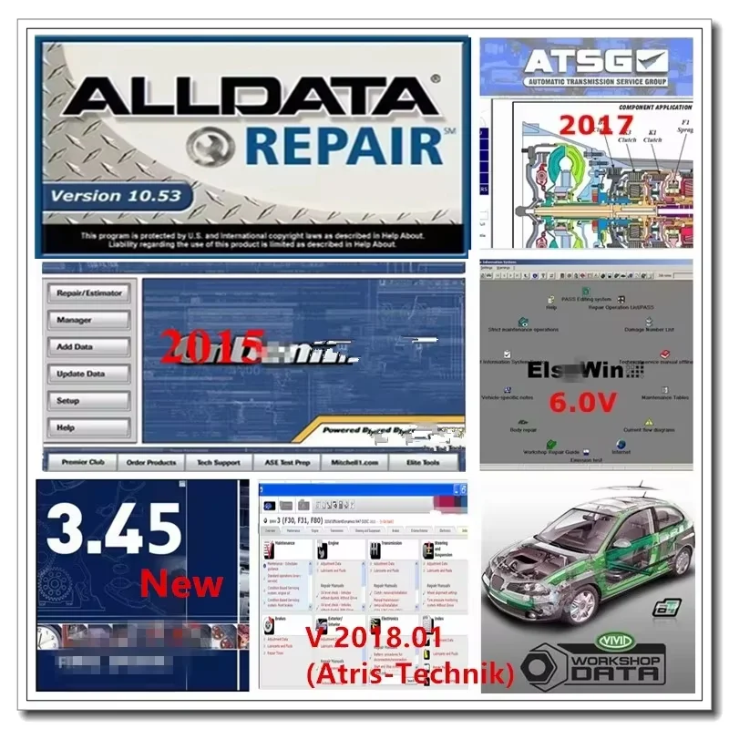 Newest Auto Repair Alldata Software V10.53 Mit.chel 2015 Atsg Vivid 2018.01v( (Atris-Technik)Elsa.Win 6.0 Atris in USB
