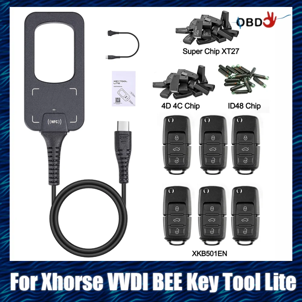 2025 VVdi Bee Key Tool Lite Frequency Detection Transponder Clone With 6 Xkb501en And 15pcs Chips Support Android With Type C
