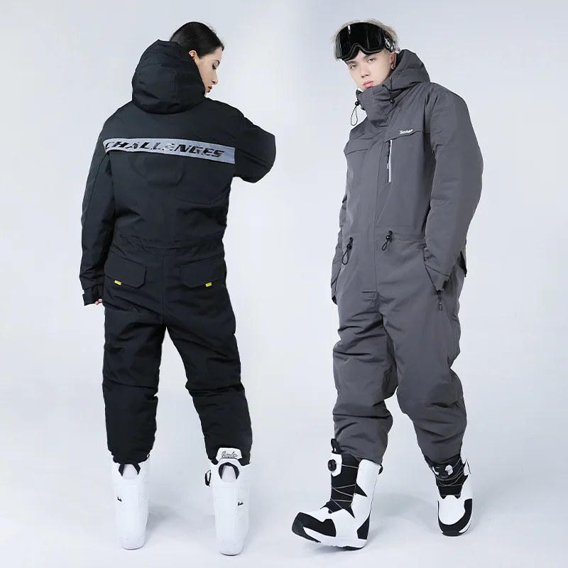 Thickened Ski Suit Men Women Warm One-Piece Jumpsuit Outdoor Waterproof Windproof Overalls Motor Riding Fishing Clothes