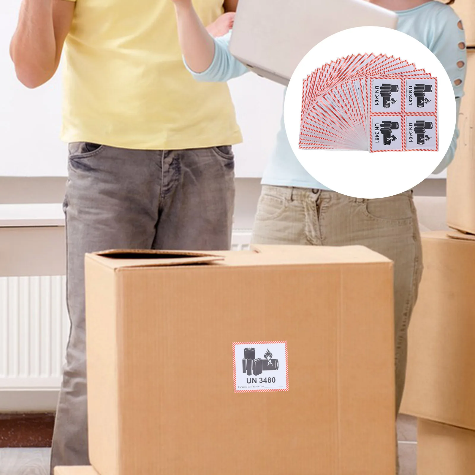 100 Sheets Warning Labels Adhesive Fire Safety Caution Stickers for Shipping Un3480 Lithium Batteries Labels