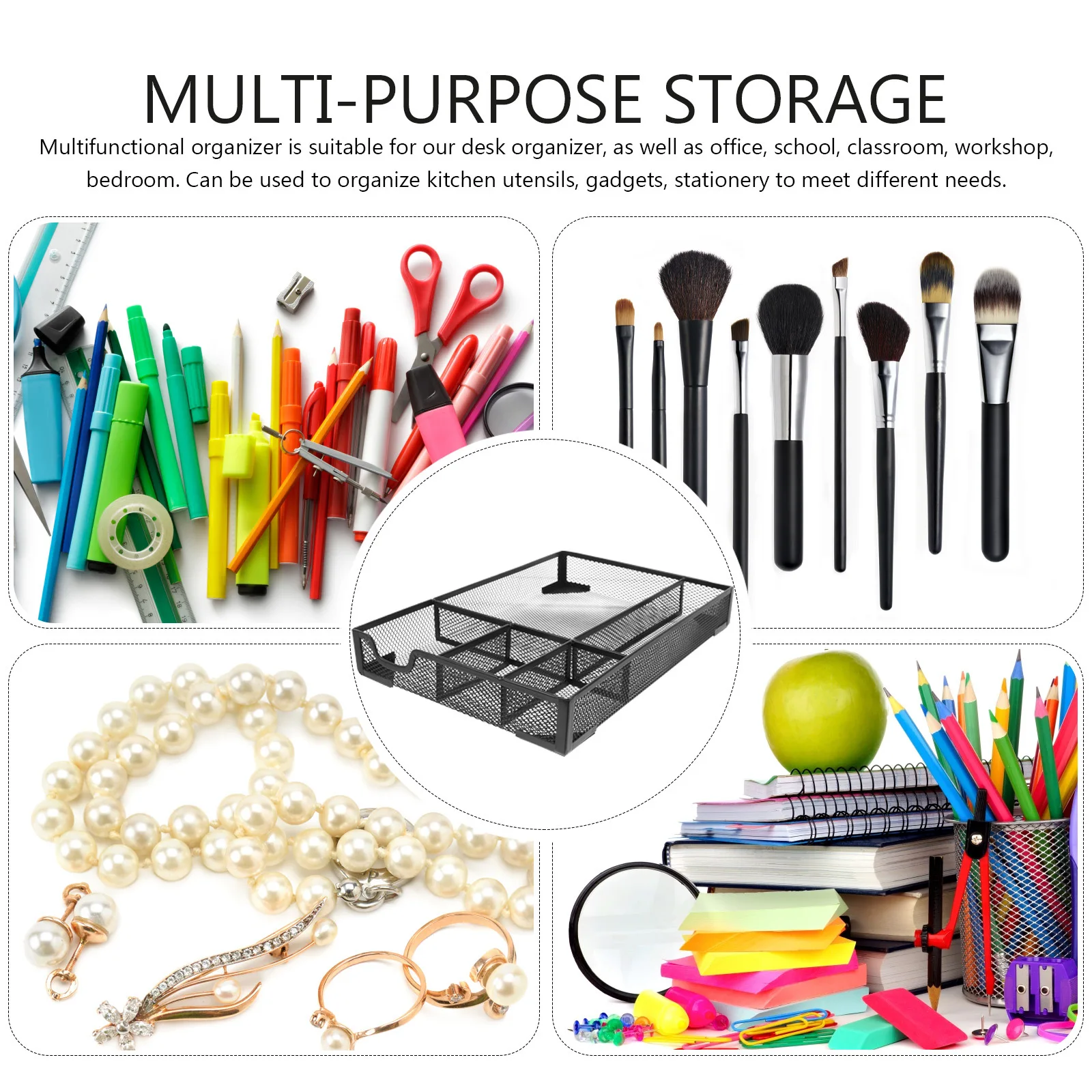 Mesh Metal 4 Compartment Desktop Document Organizer Rack Silver For Magazines Catalogues Folders Storage File Holder