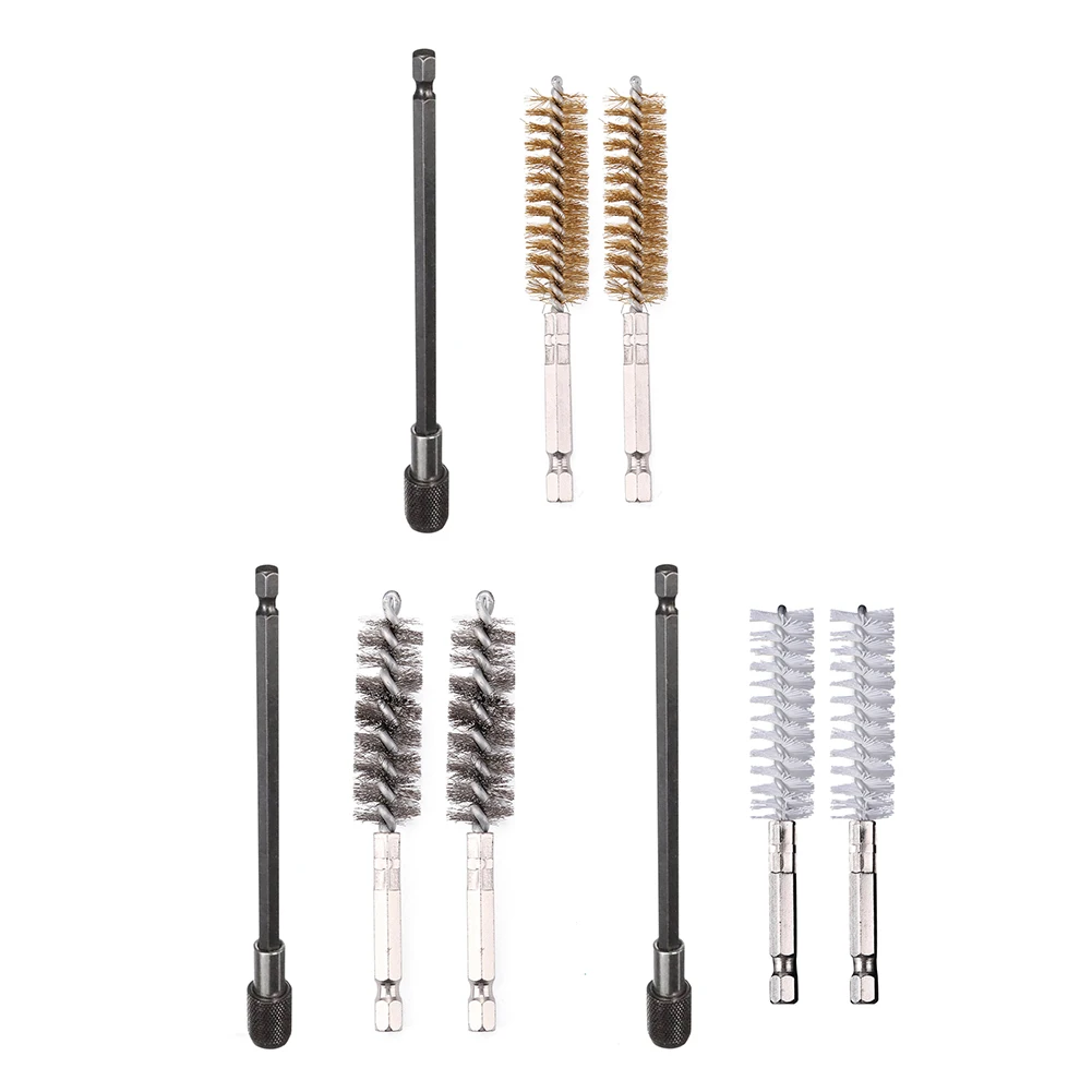 2pcs/set Pipe Dredging Hex Shank Brush Kit with Drill Bit Extension Rod Automobile Paint Dust Remover Hand Tool