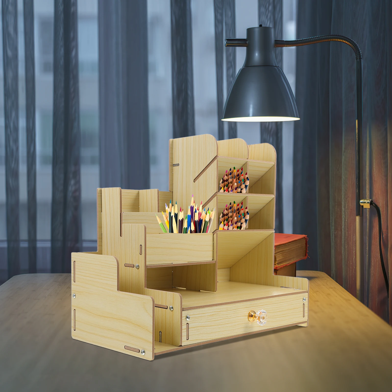 Desk Organizer Storage Box Wooden Desktop Stationery Holder For Pens Markers Scissors Notebooks Office School Home Use