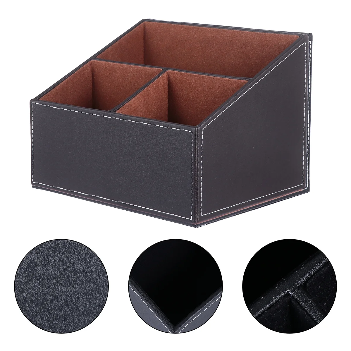1pc Desktop Organizer Trapezoidal Storage Box Surface Waterproof Three-Grid Design Flocking Lining Wear-Resistant Bottom