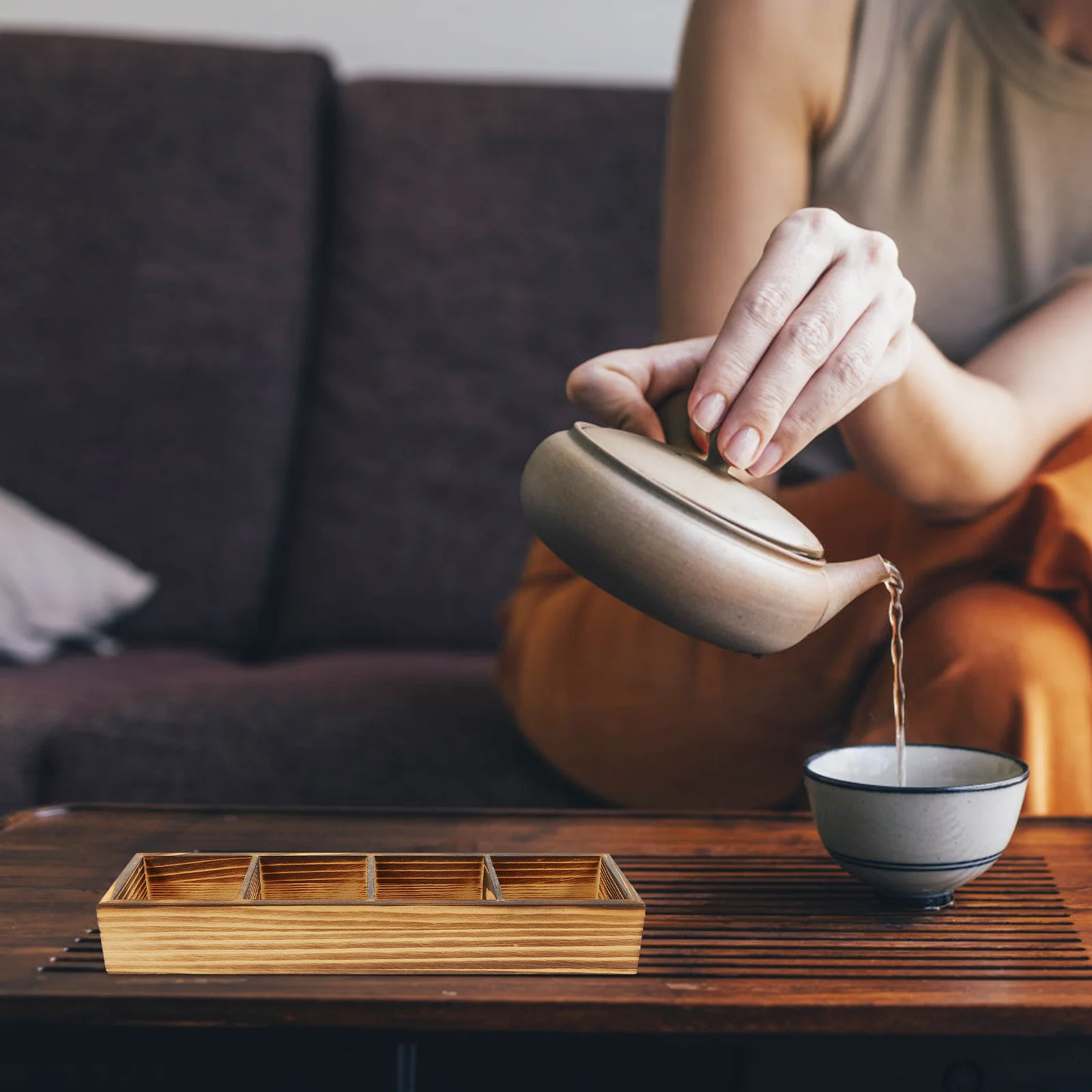 Desktop Multi-Grid Storage Box Vintage Wooden Organizer for Tea Bags Makeup Remote Controls Household Sundries Natural Farmhouse