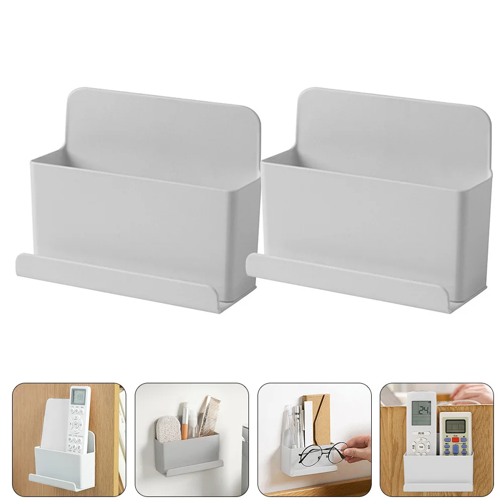 2Pcs Remote Controller Wall Storage Box Semi-Transparent Punch Free Adhesive Organizer Holder for Living Room Bedroom