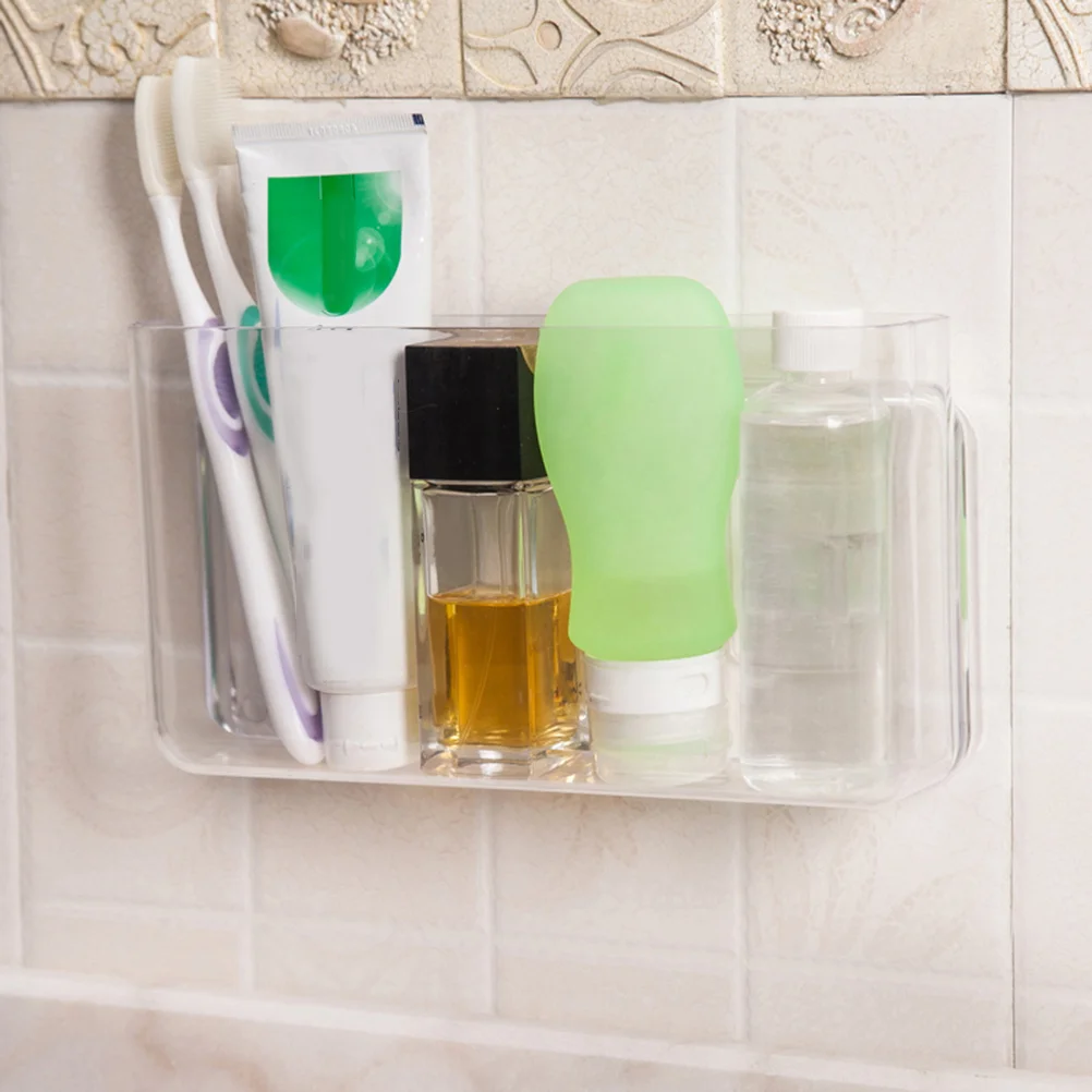 Wall Mounted Storage Box Clear Plastic Sundry Organizer No Punch Mounting Large Capacity Container For Kitchen Home Restaurant