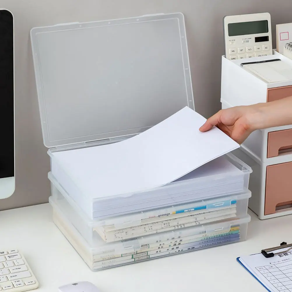 A4 Storage File Box Plastic Archives Case with Lid 3in Thick Folded Folder Organizer Document Storage Box Blue 1 Pack (75mm)