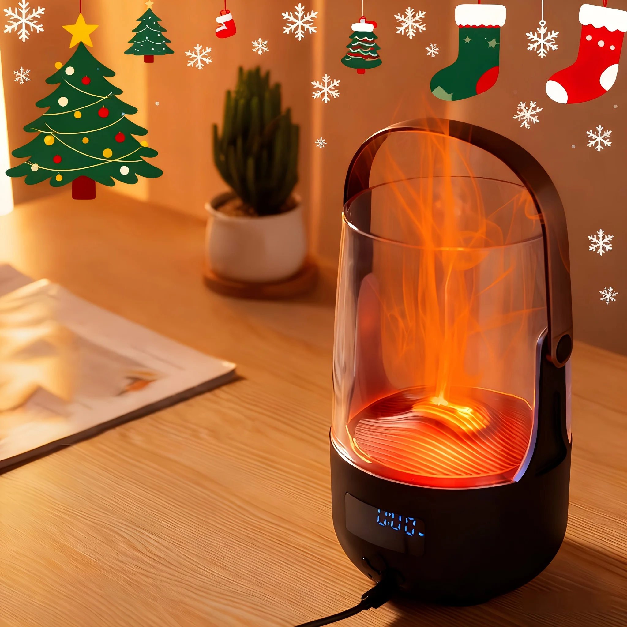 USB Powered Electric Fireplace Humidifier -6.76oz Aromatherapy Diffuser with Simulated Flame Heater for Home Office Holiday Gift