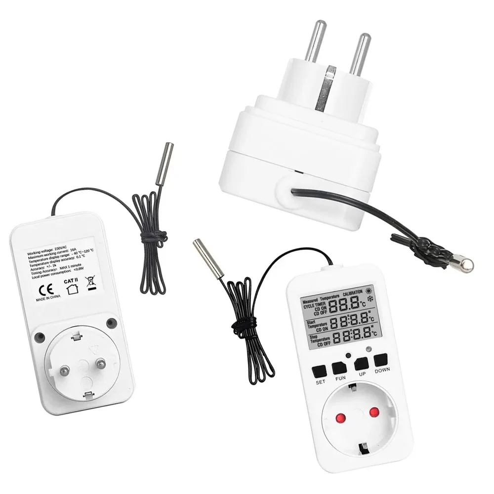 16A EU Plug Digital Temperature Controller Socket for Greenhouse Thermostat Switch with Sensing Probe Heating Cooling Switch