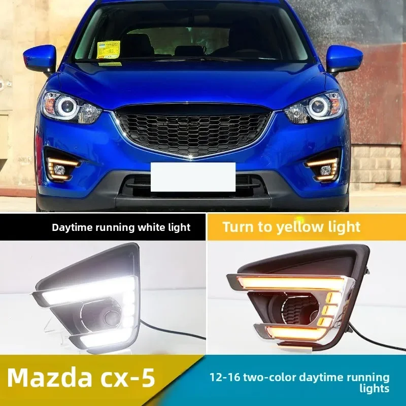 1 Pair LED Daytime Running Light with Yellow Turn Signal Front Fog Lamp Auto DRL for Mazda CX-5 CX5 2012 2013 2014 2015 2016