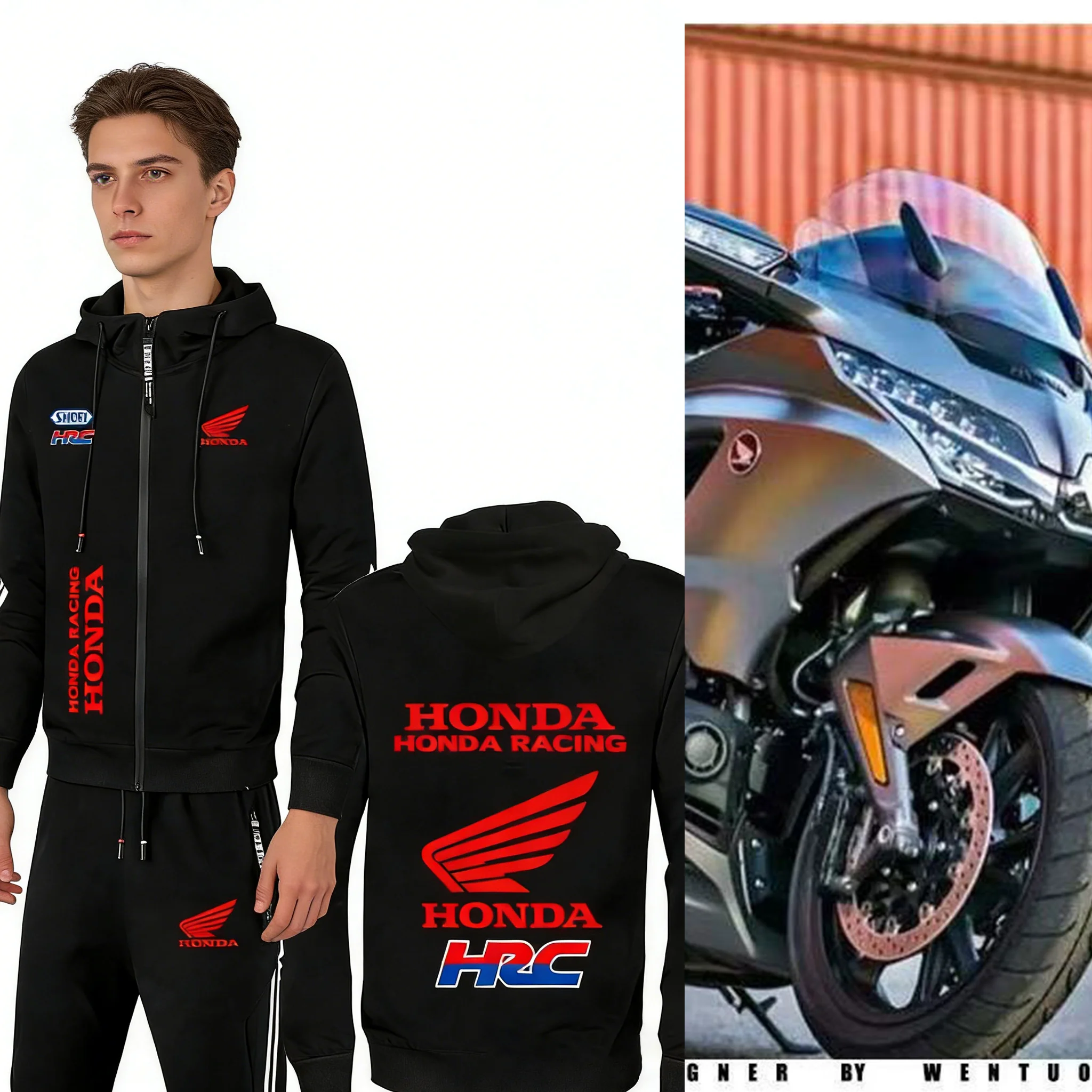 2025 Men Tracksuit Honda motor Wing Printed Hoodie Suits Hooded Sweatshirt+Pants 2 Pieces Men Sets Running Fitness Men Clothing